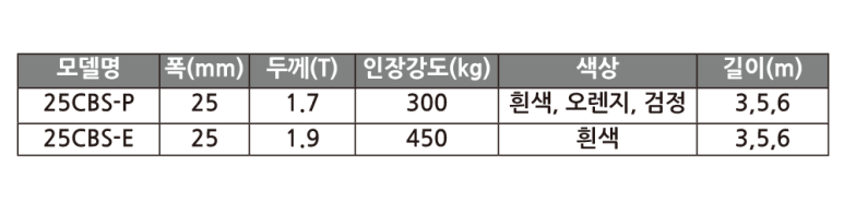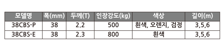25mm, 38mm, 50mm 폭의 폴리프로필렌 또는 폴리에스터 직조끈을 사용해